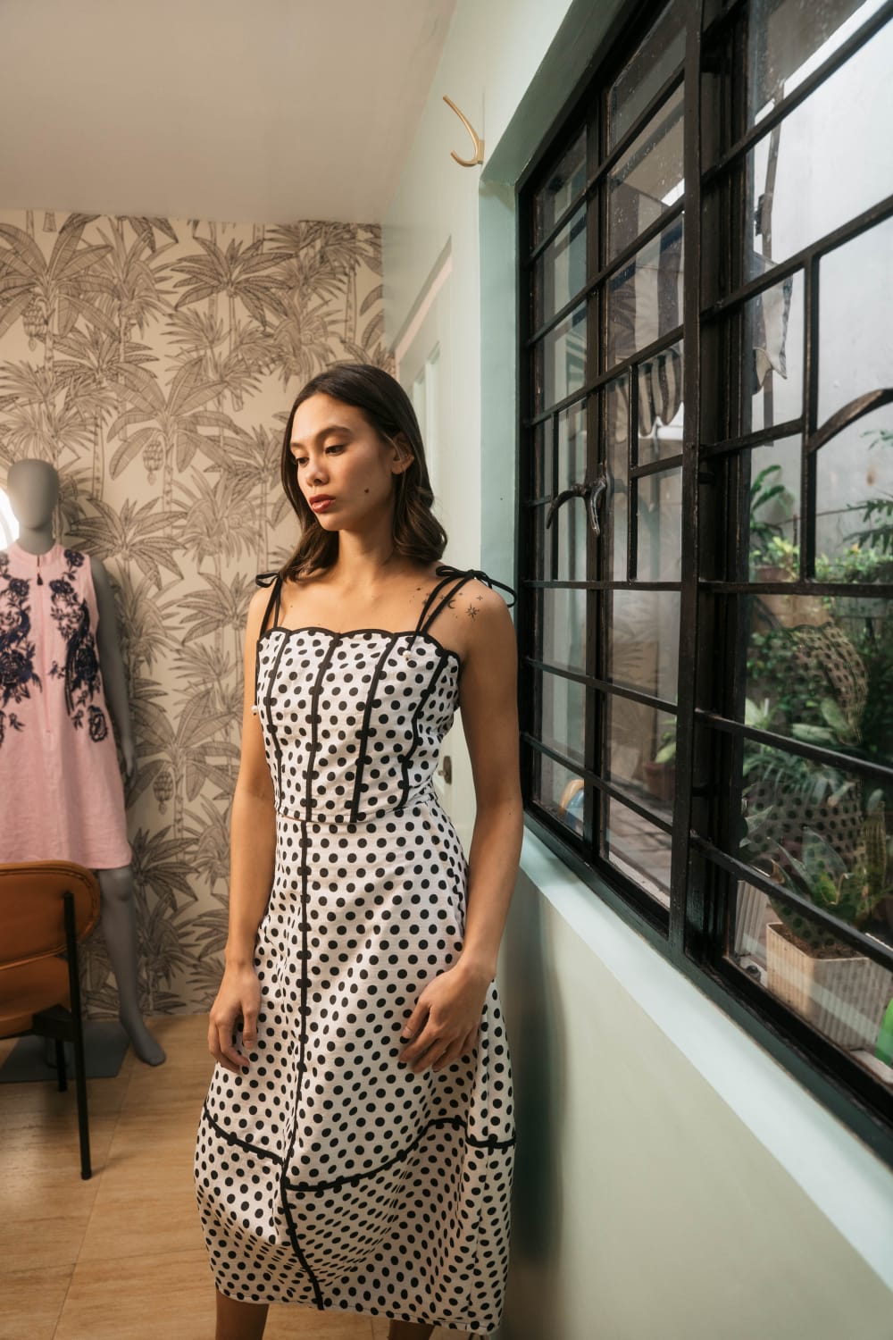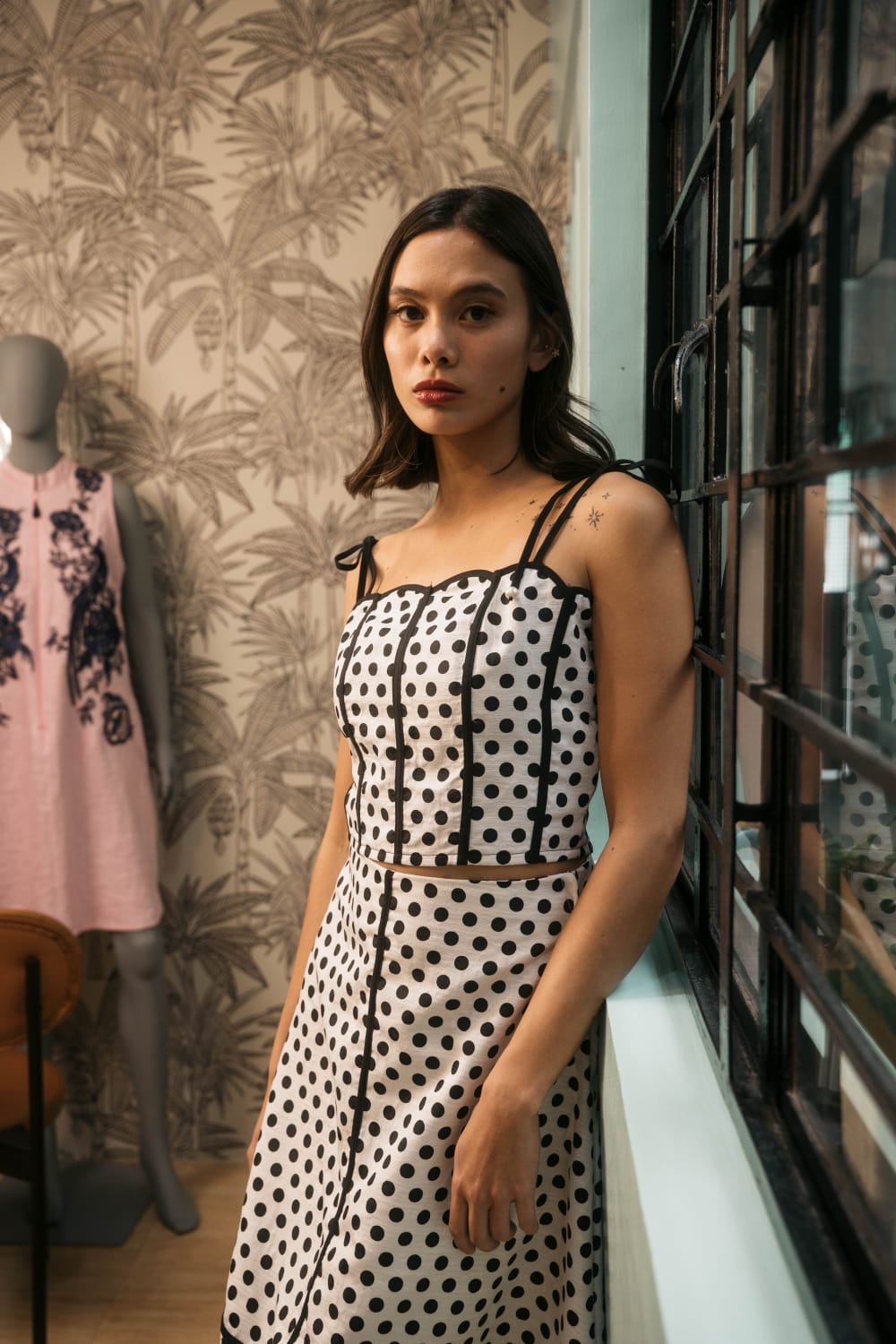 Black and white cotton polka dots corset.