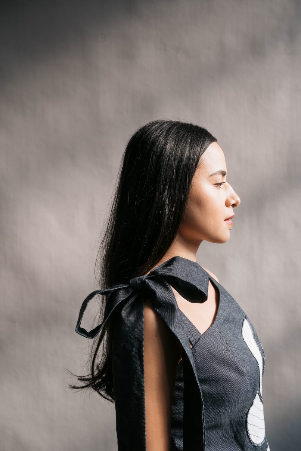 Bow detail on asymmetrical dress.